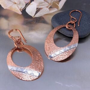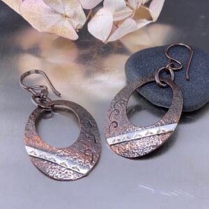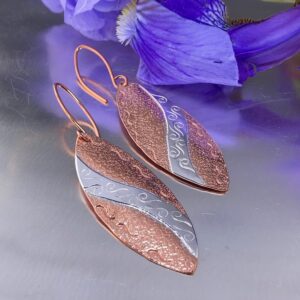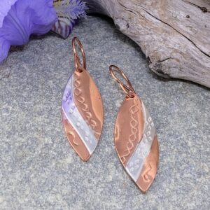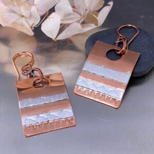 Copper & Argentium Silver Rectangle Earrings – Hand Etched Design