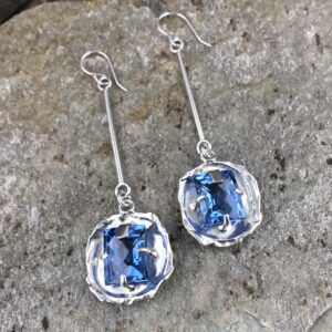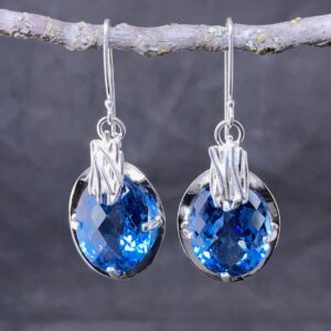 London blue topaz earrings – wax seal – 36.75 carat – Argentium silver