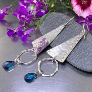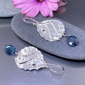 London blue topaz earrings – wave curl – Argentium silver – 35.45 carat