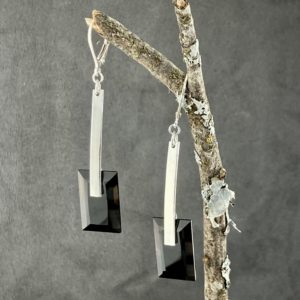 smoky quartz earrings – long bar – 44.4 carat – Argentium silver