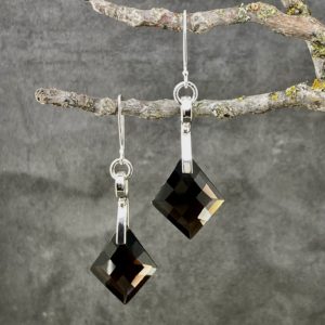 smoky quartz earrings – twig cap – Argentium silver – 23 carat