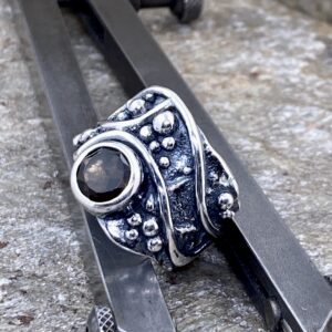 Smoky Quartz Ring – Size 8.5 – Argentium Silver Buttonhole Band – 4.5 Carat