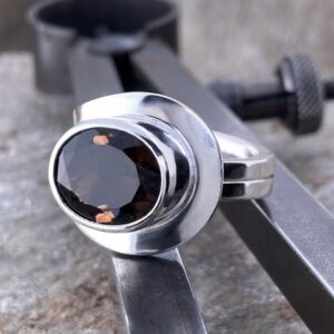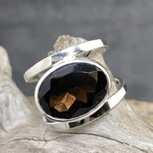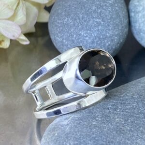 Smoky Quartz Ring – Size 8.25 – Argentium Silver Double-Band – 5.5 Carat