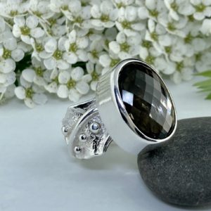 Smoky Quartz Ring – Size 9.25 – Argentium Silver Buttonhole – 1.5 Carat