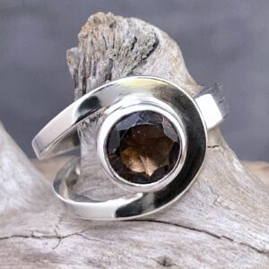 Smoky Quartz Ring – Size 7.5 – Argentium Silver Buttonhole Band – 4.5 Carat