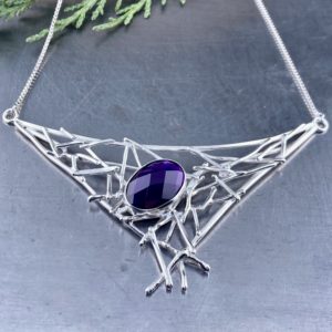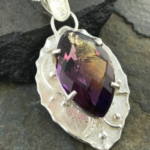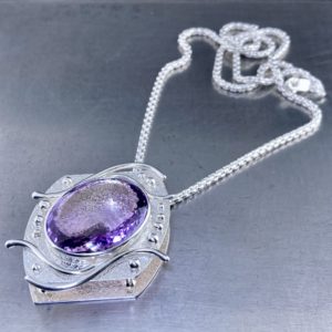 • Amethyst Pendant – Argentium Silver Melted Boulder – Antique