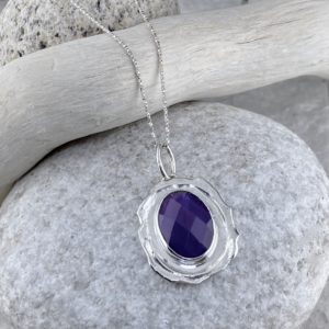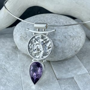 amethyst pendant – Argentium silver rapids circle – 18 carat