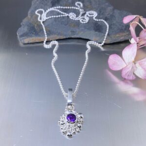 amethyst pendant – Argentium silver pebbles – 23.5 carat