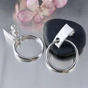 teardrop earrings – lunar crescent moon – Argentium silver – large