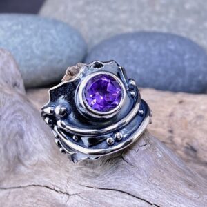 • Amethyst Ring – Size 9 – Argentium Silver Waves – 2 Carat