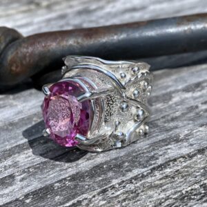 Pink Topaz Ring – Size 9 – Argentium Silver Waves – 10.5 Carat