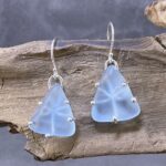 beach glass earrings – wire wrap – Argentium silver – powder blue