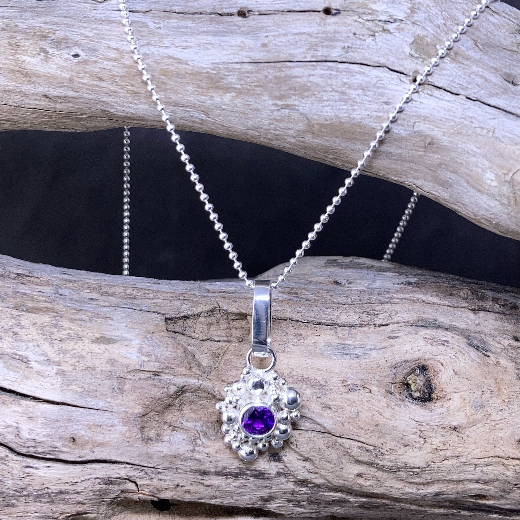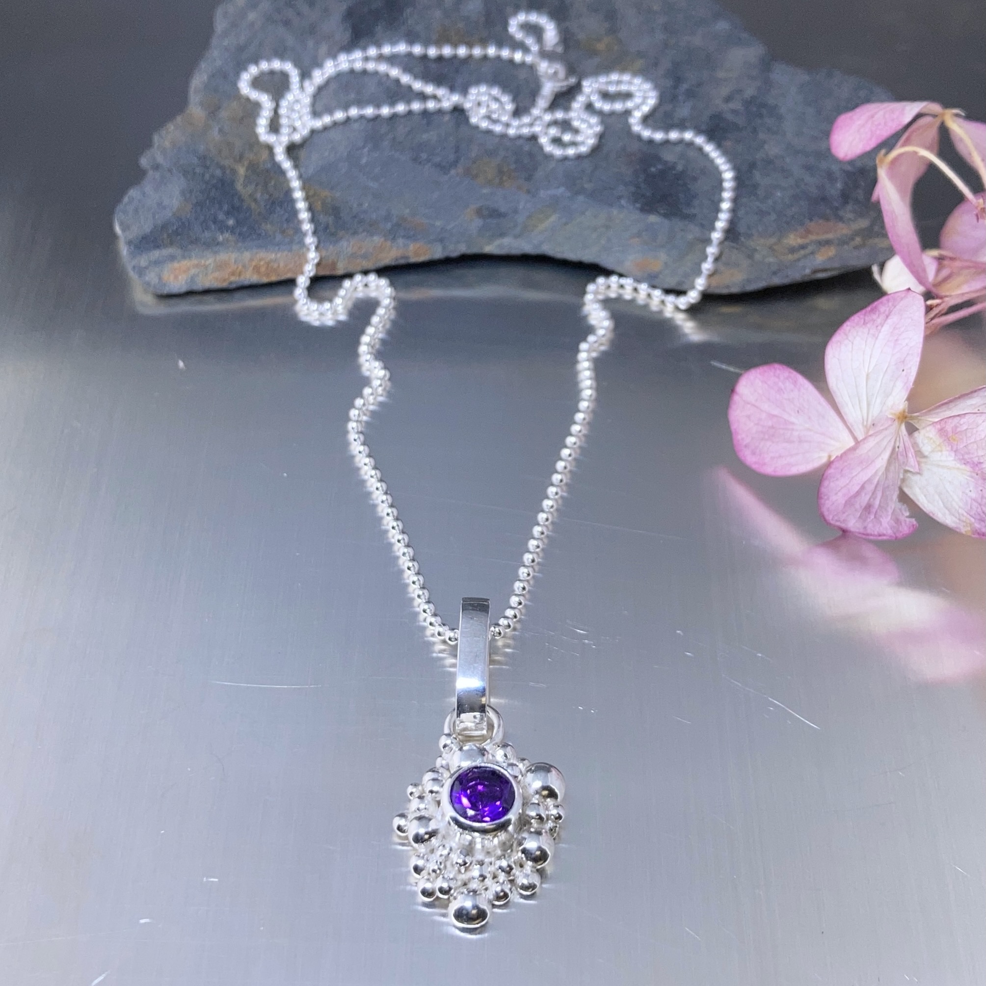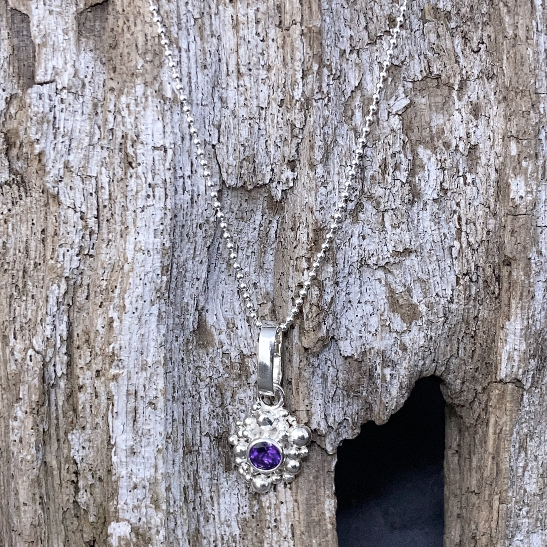 amethyst pendant – Argentium silver granules – 1 carat