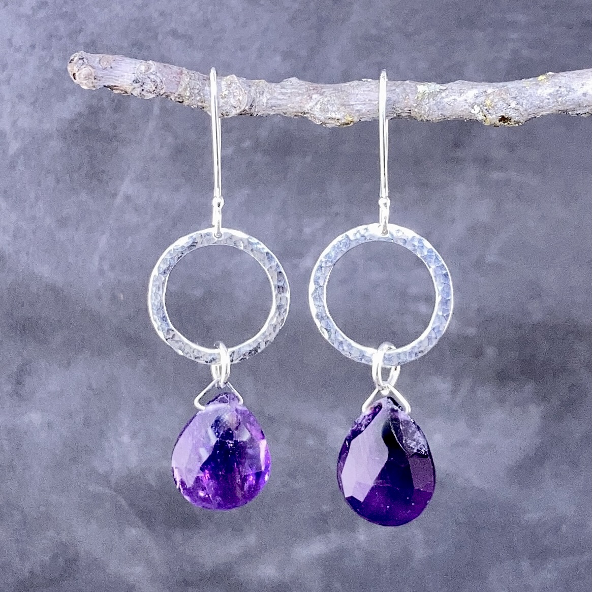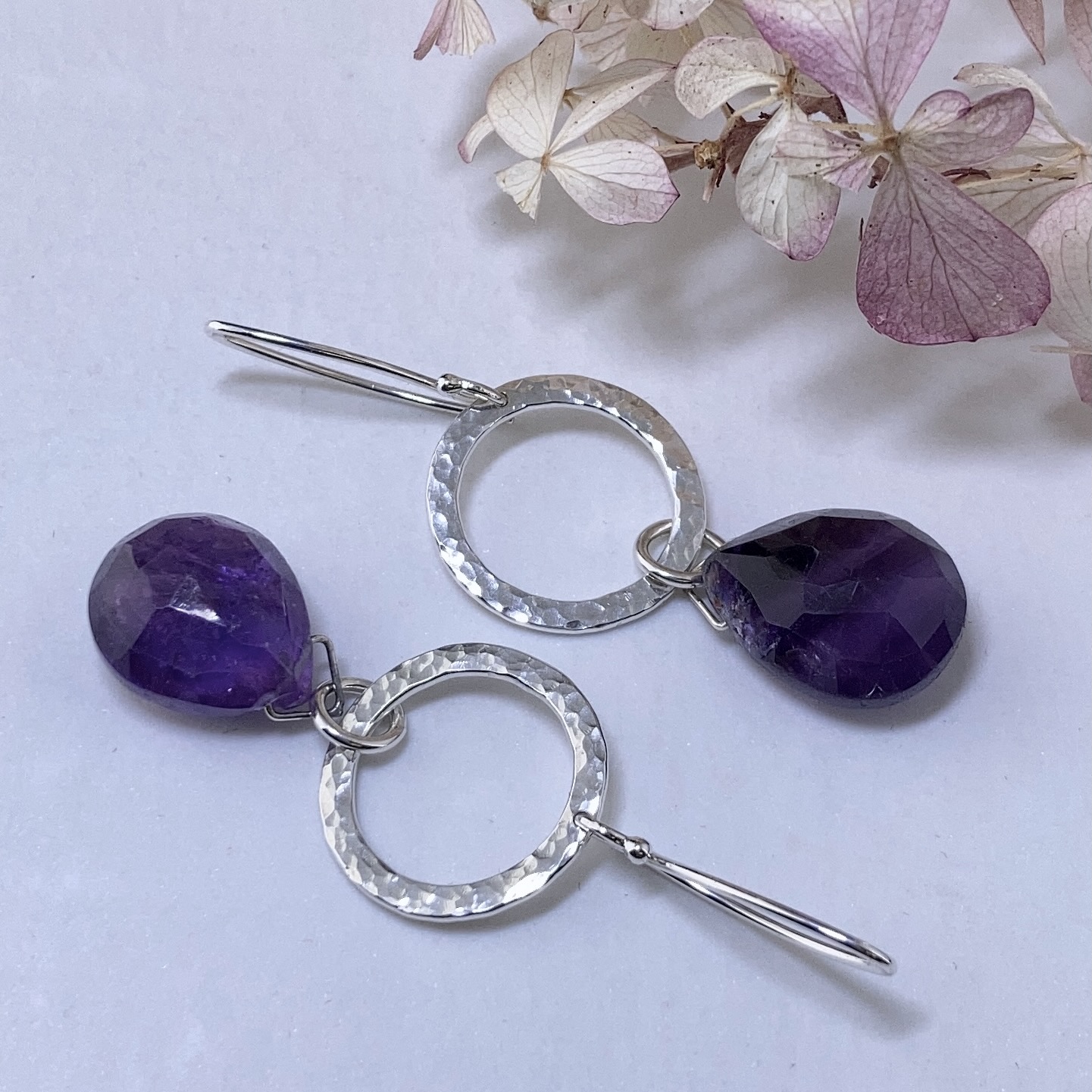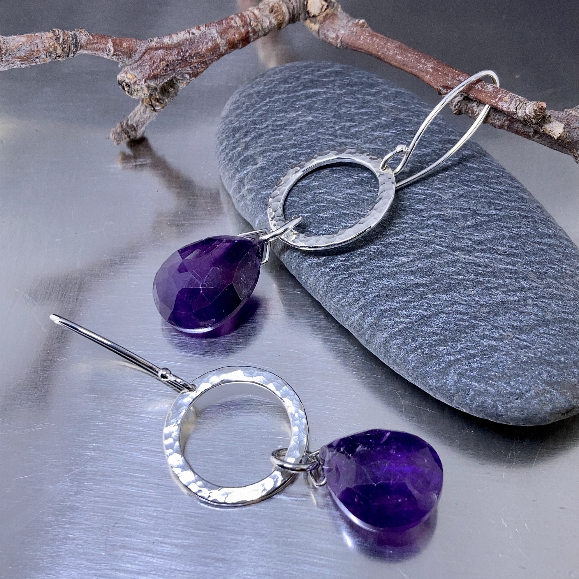 amethyst earrings - hammered sun - Argentium silver - Image 4