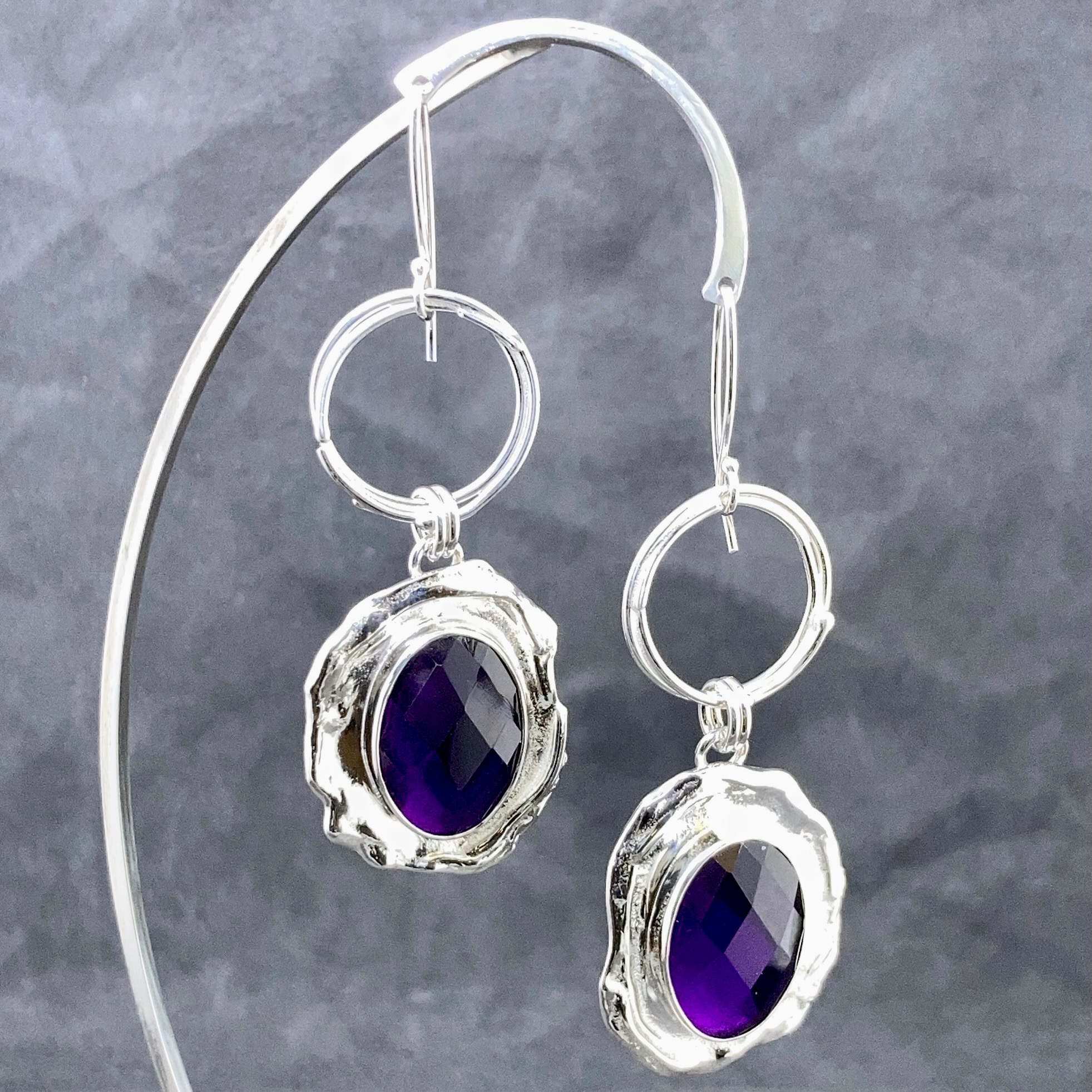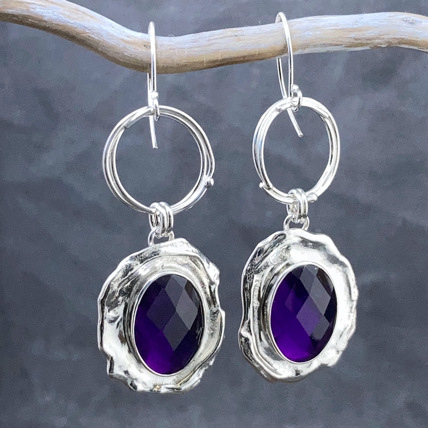 amethyst earrings - wax seal - Argentium silver - Image 2
