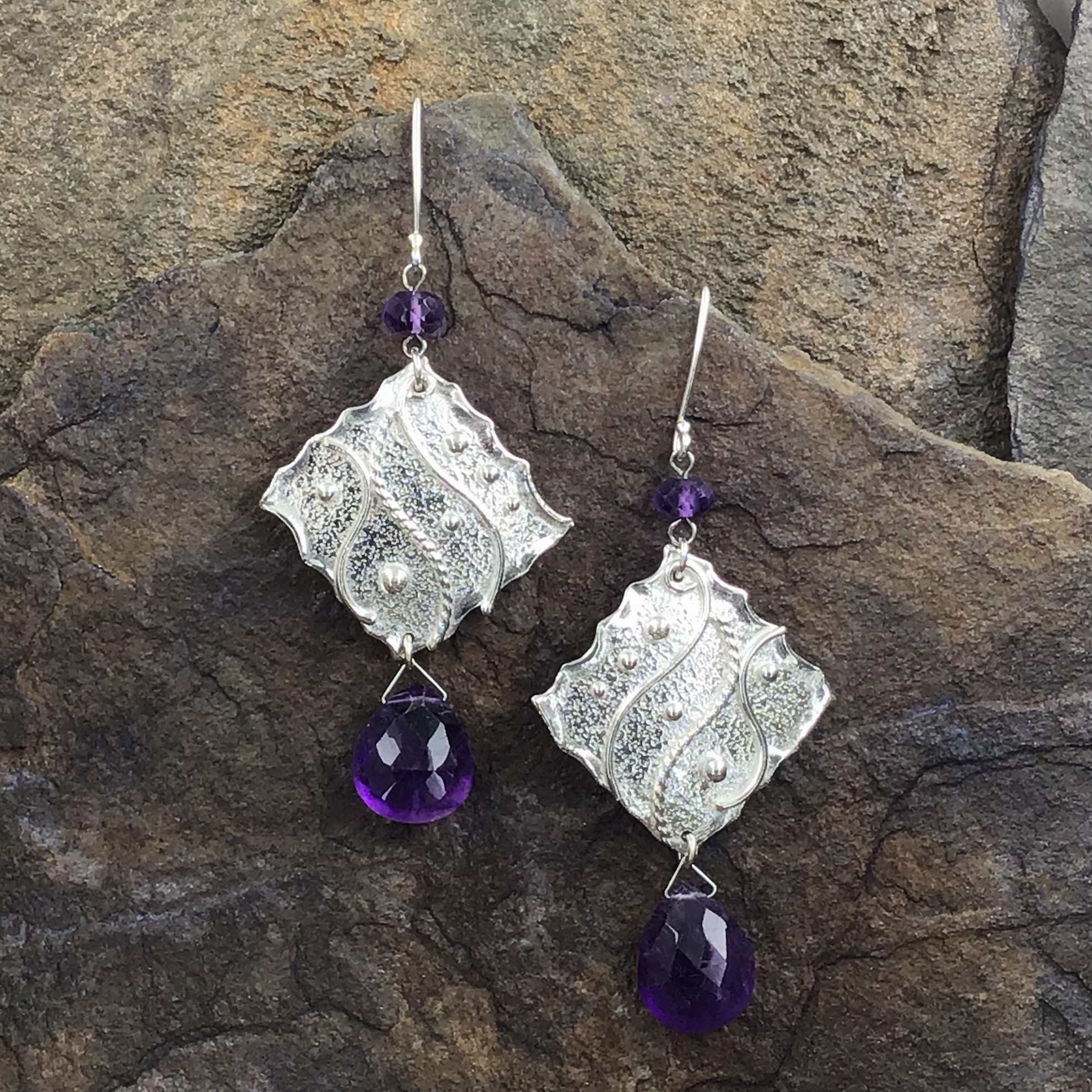 amethyst earrings - diamond waves - Argentium silver - Image 3