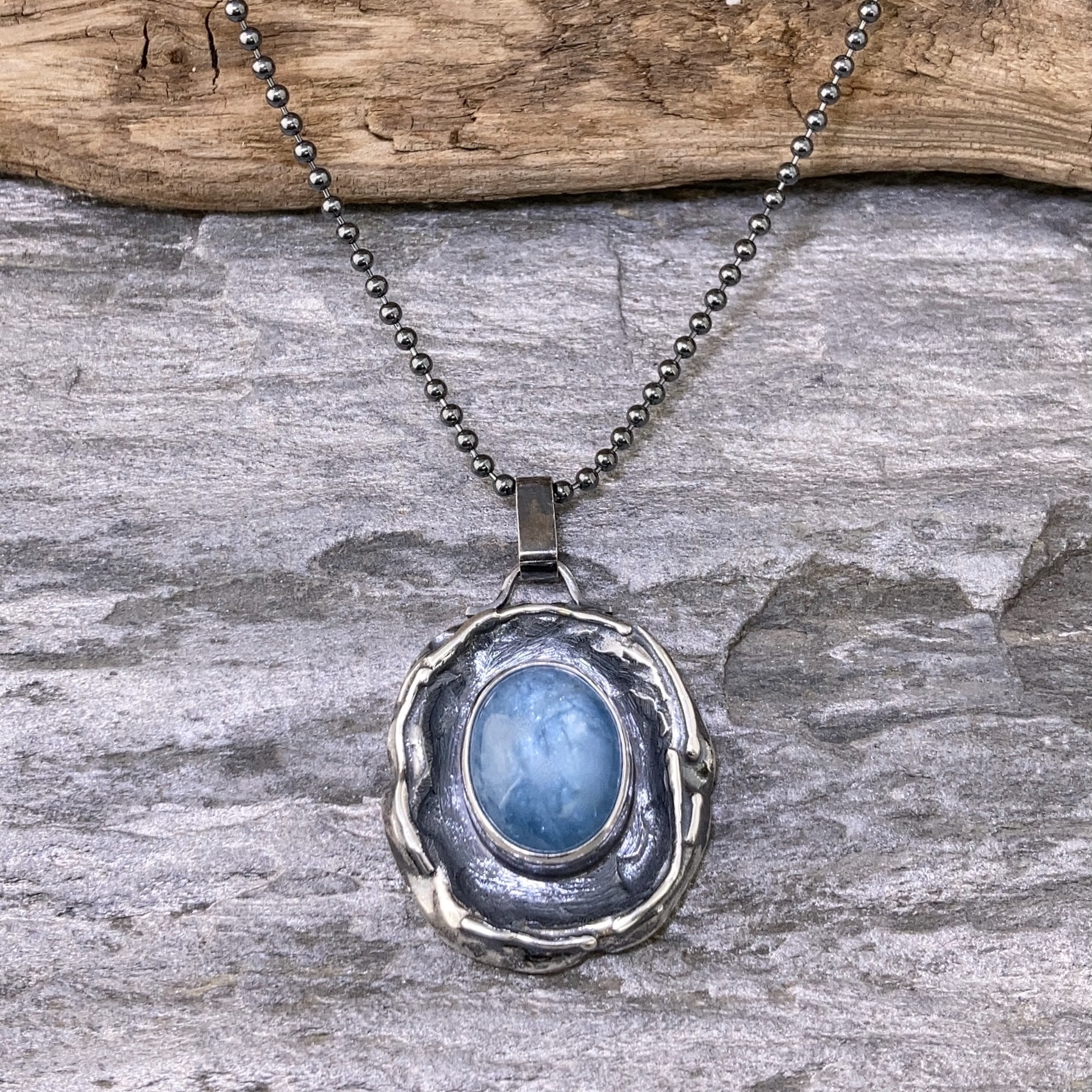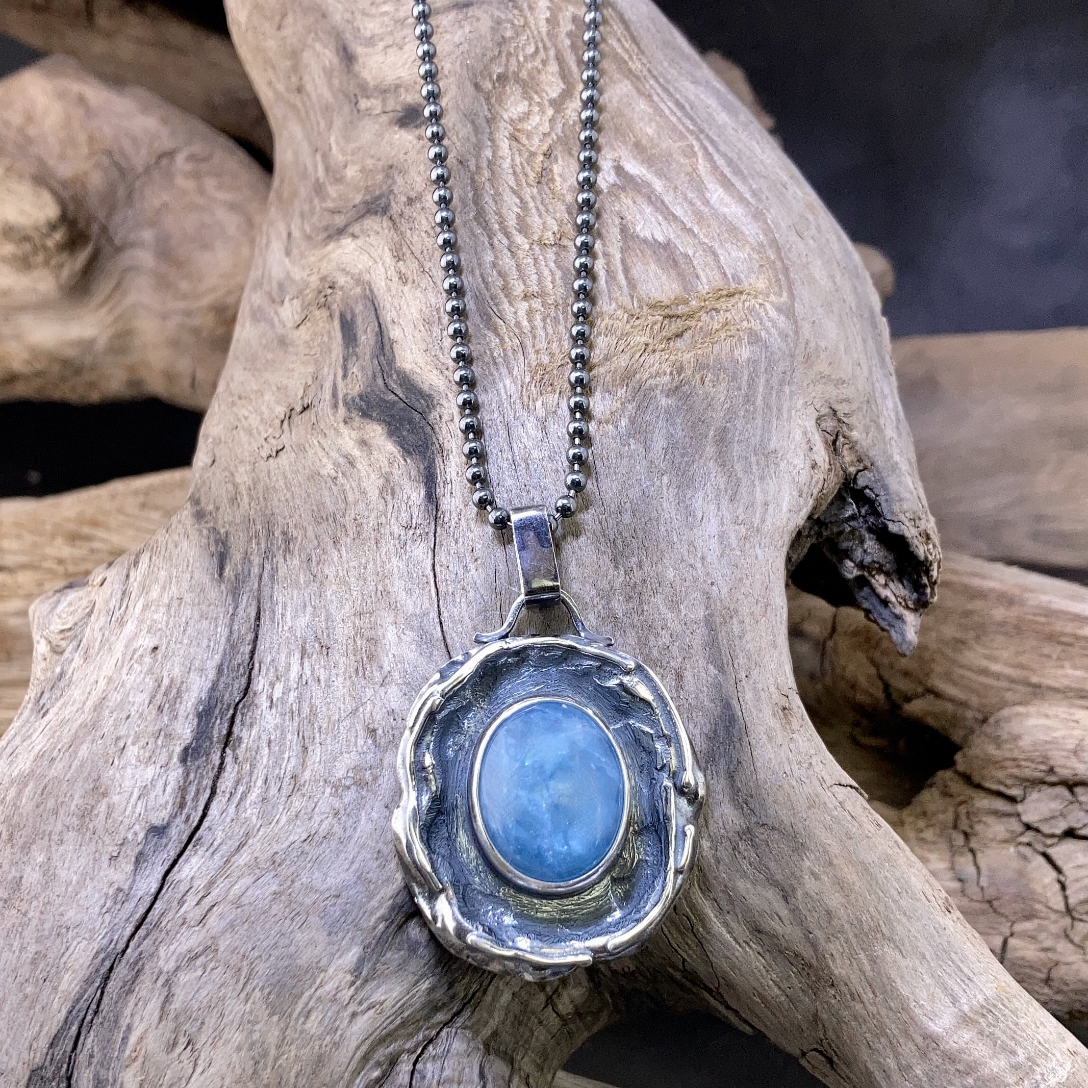aquamarine pendant – Argentium silver wax seal, antique finish