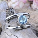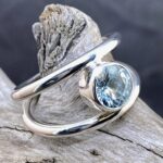 This 1.75 carat brilliant-cut Aquamarine shows a clear blue tone with gentle sparkle. Known for its calm, watery color, it reflects light softly and pairs beautifully with the cool shine of Argentium silver.