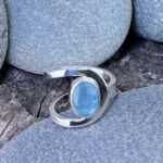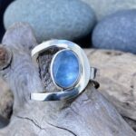 The Buttonhole design continues to be one of our Best Sellers – an interesting design. So comfortable, and it supports a nice size gemstone. The silver band wraps around the gemstone and doubles back to complete the ring band. I hammer out the ‘buttonhole’ edge for extra width and silver presence.