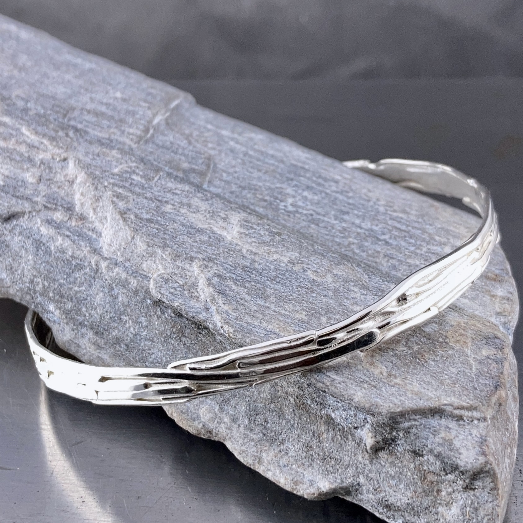 Bark Bangle – Argentium Silver – Medium (6.5 cm) Polished