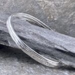 I craft the Argentium Silver Bark Bangle XLarge 7.1 cm by flattening, texturing, and fusing 16–20 ga silver wire to build a raised bark relief. After that, I form the circle true, polish the surface to a bright sheen, and work-harden the metal for strength. Because every step happens by hand in my BC studio, each bangle has its own character.