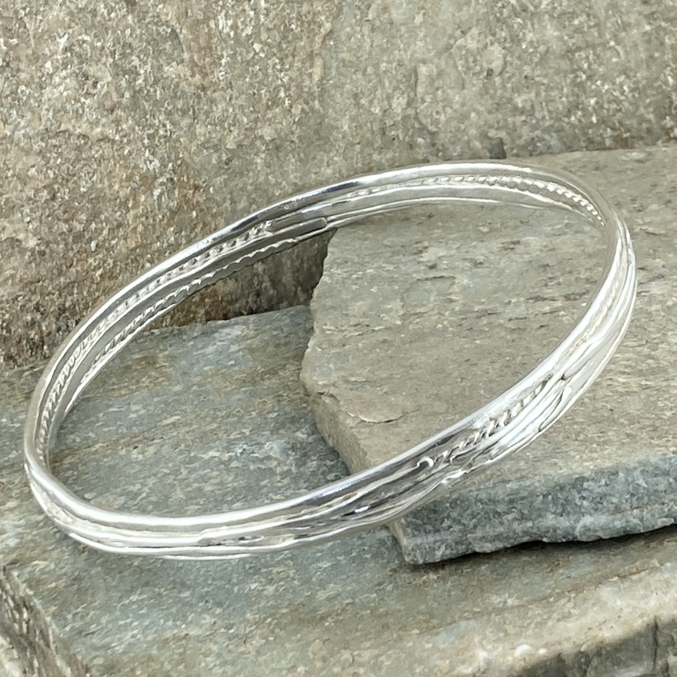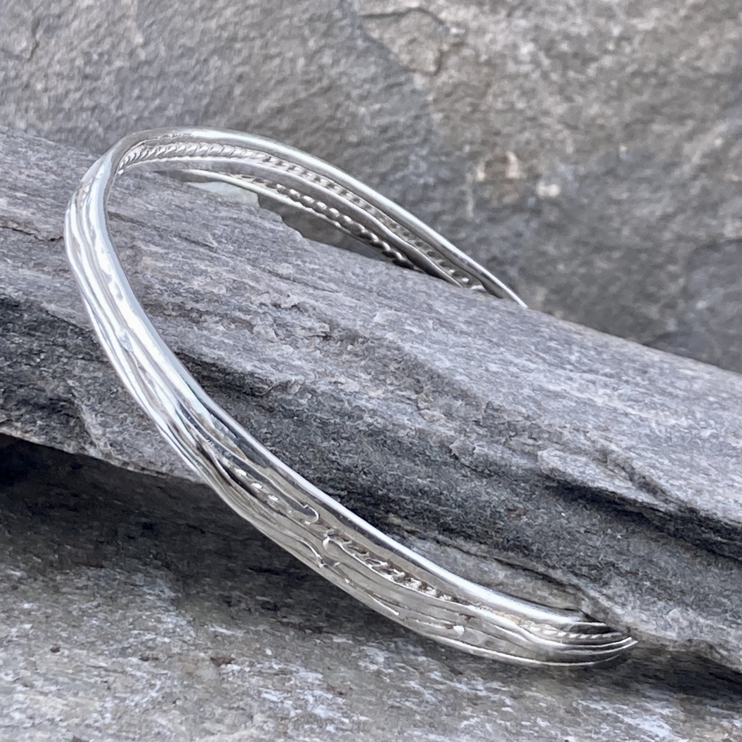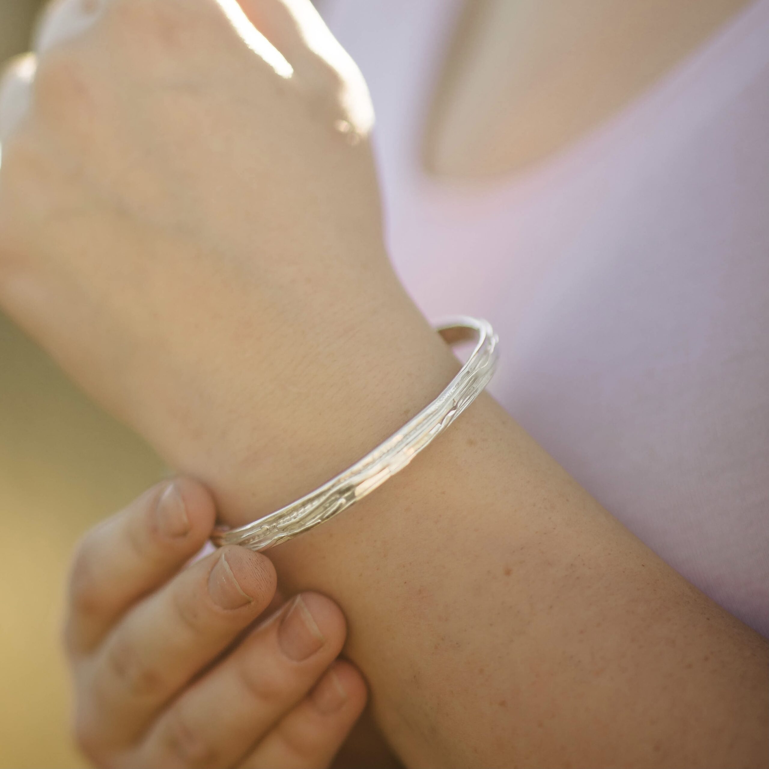 Bark Bangle – Argentium Silver – XLarge (7.1 cm) Polished