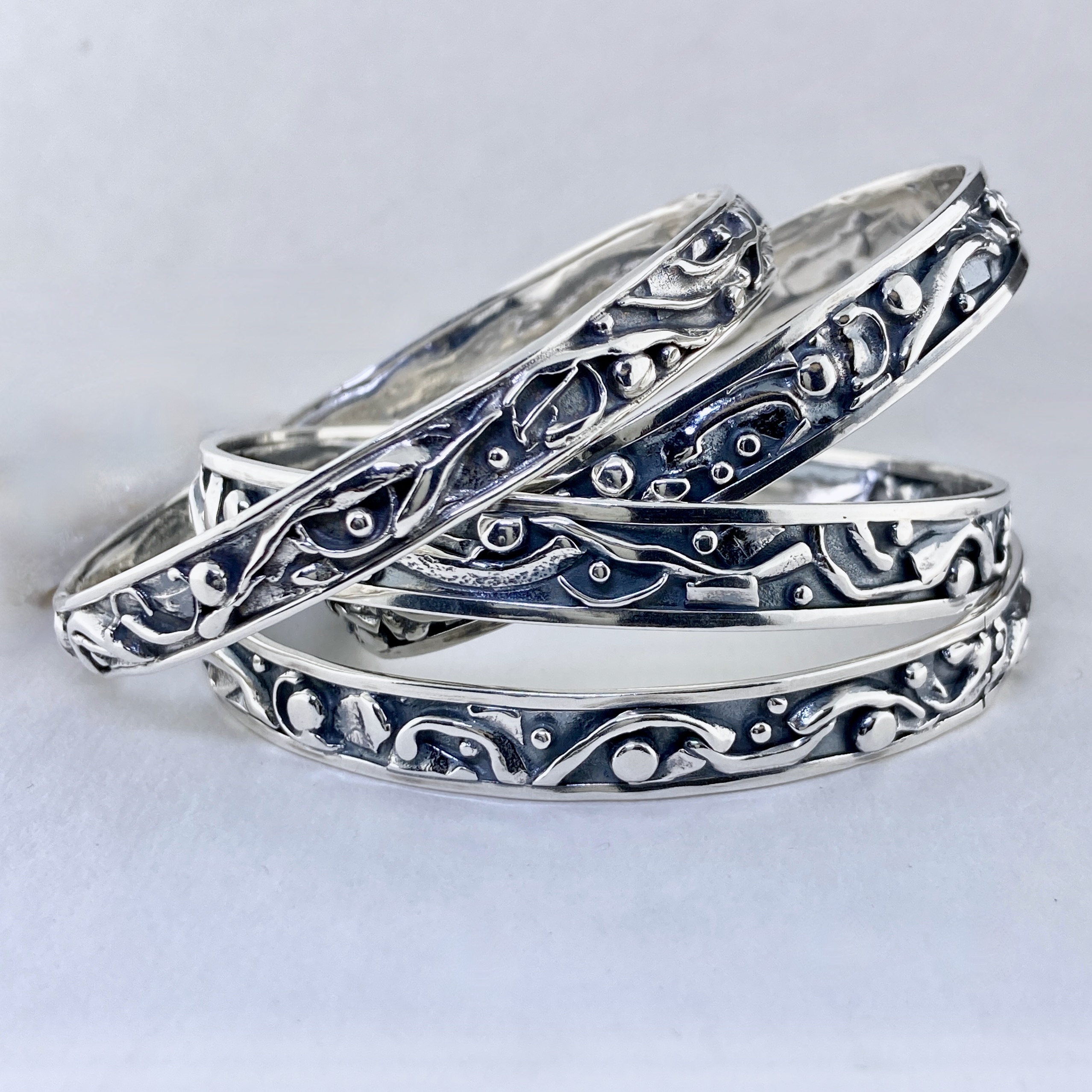 Argentium Silver Rapids Bangles – Antique Finish - Image 4