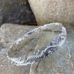 This bangle is made from Argentium 940 silver — bright, nickel-free, and tarnish-resistant. After wearing it, wipe gently with a soft, dry cloth and store in a closed container. Avoid chemical dips or harsh cleaners to keep the texture and polish strong. Learn more: