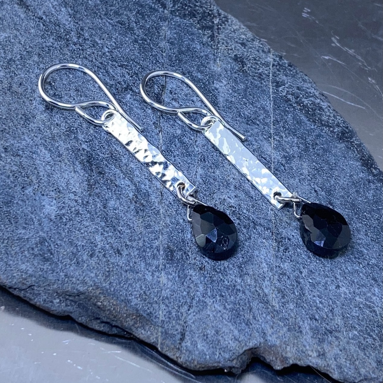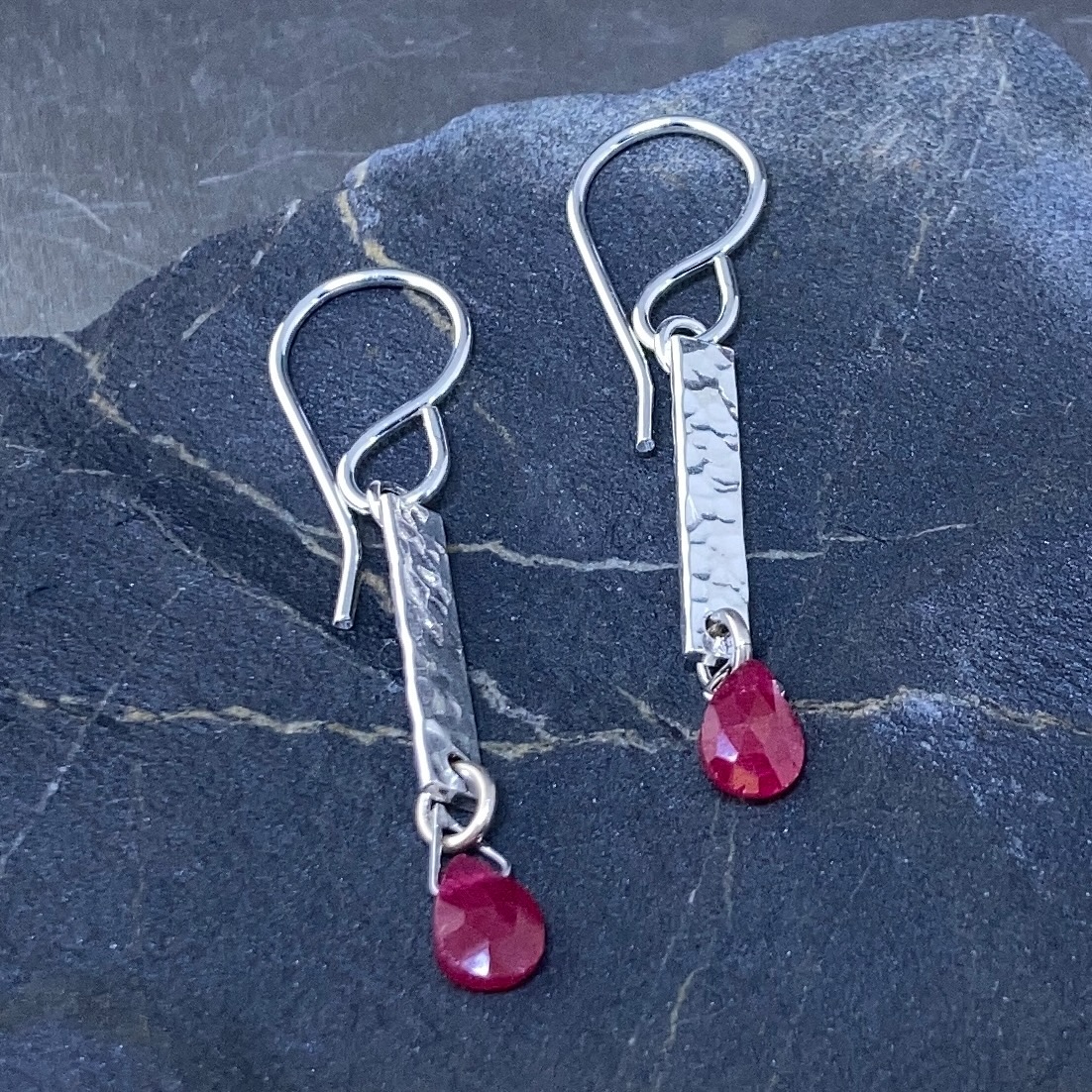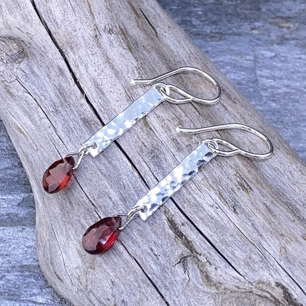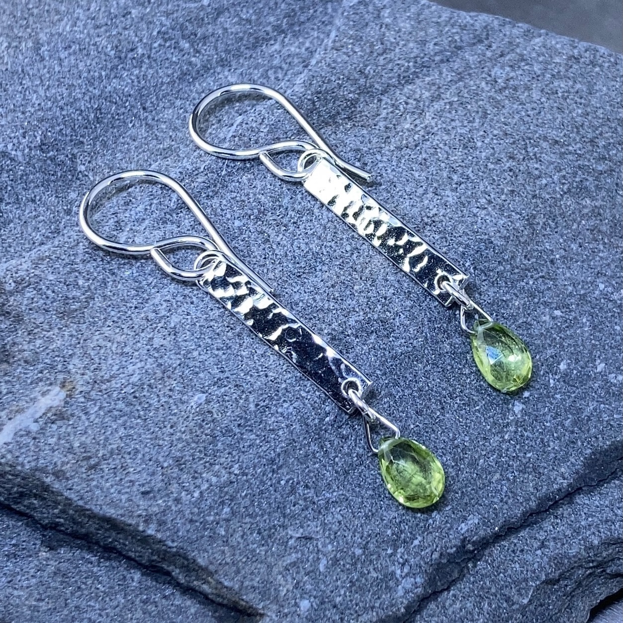 Hand hammered texture on Argentium silver bar. With beautiful gemstone accents.