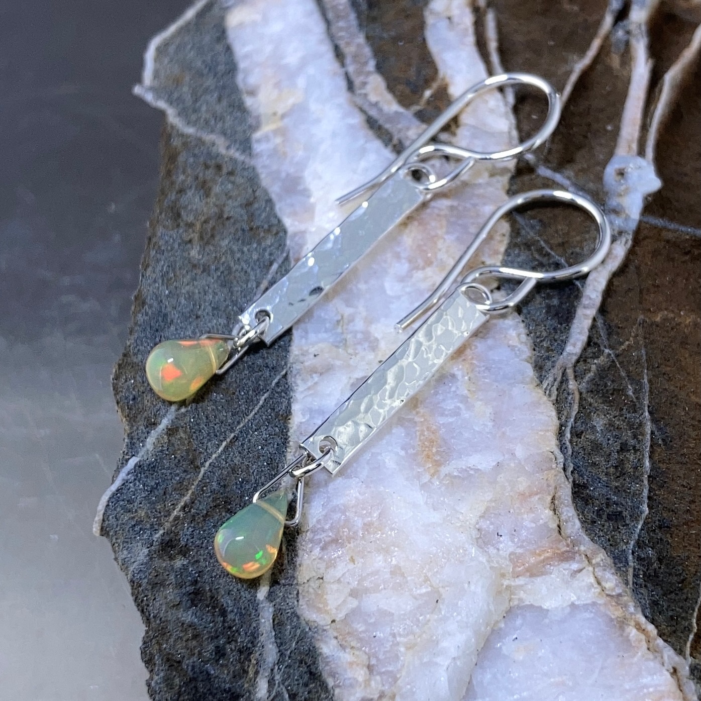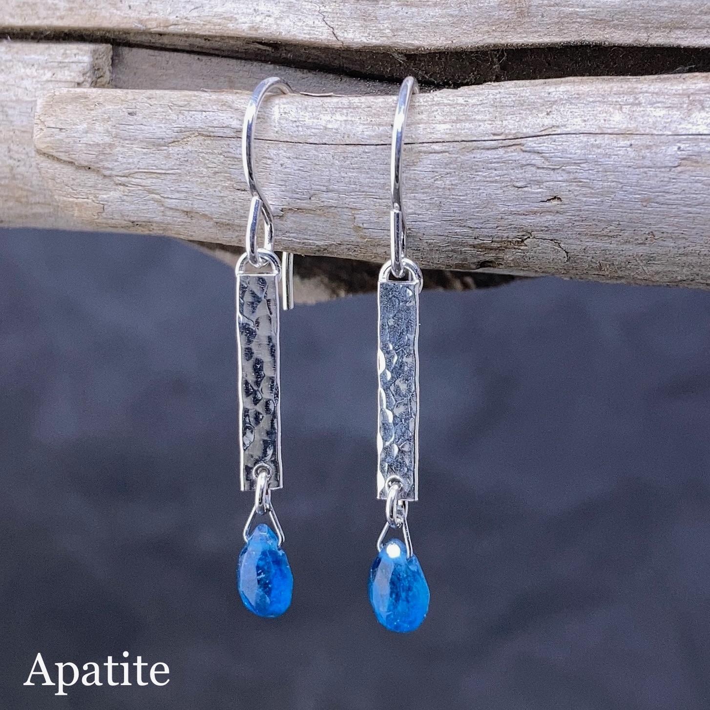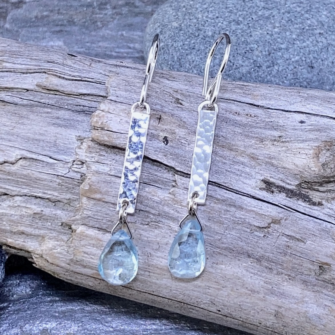 Hand hammered texture on Argentium silver bar. With beautiful gemstone accents.