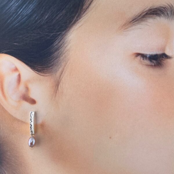 bar with pink pearl earrings