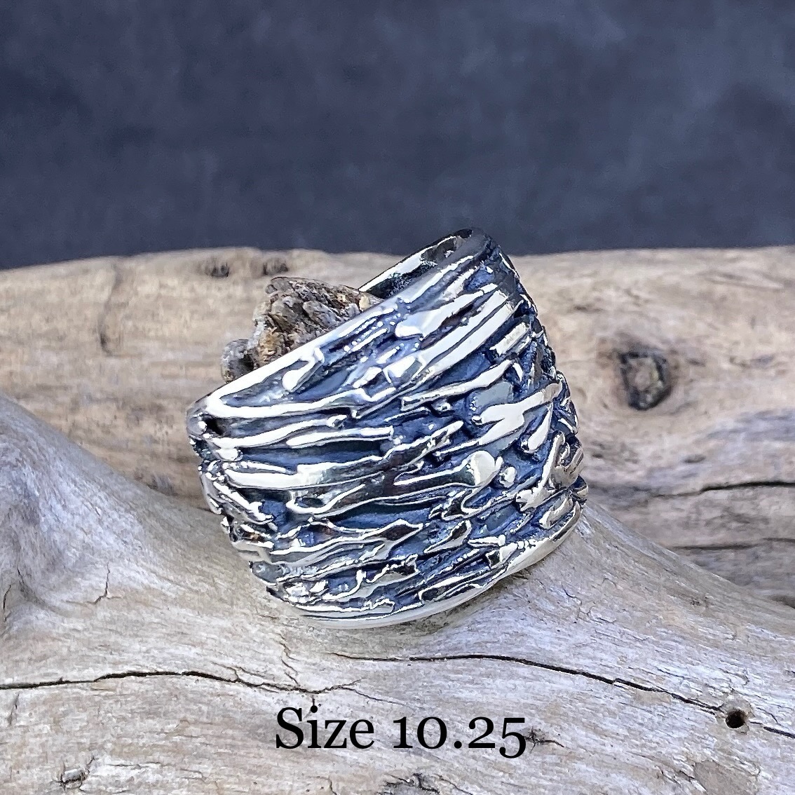 Bark Ring – Size 10.25 – Argentium Silver – Antique Finish