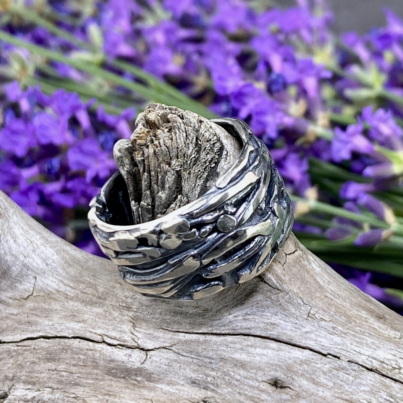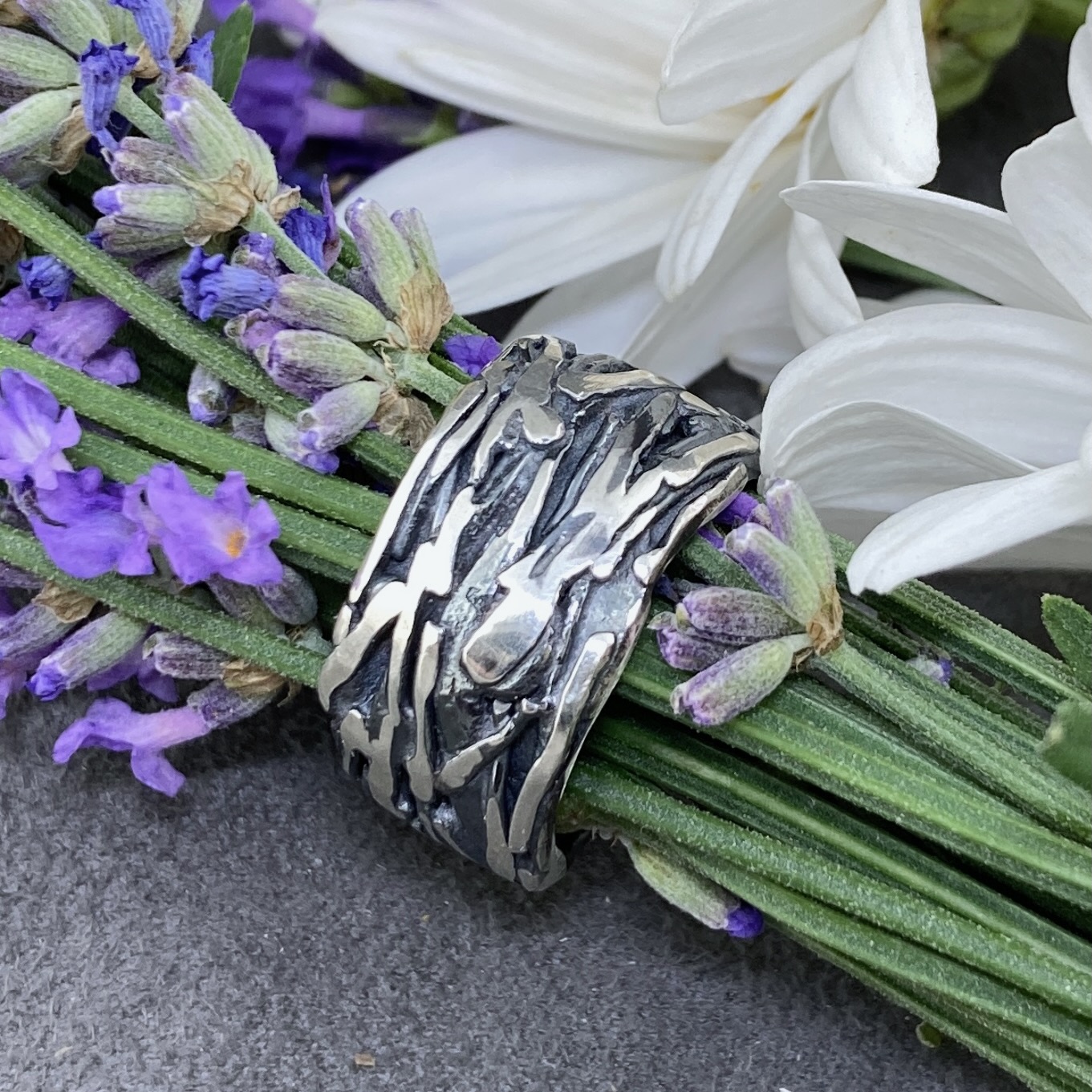 bark ring - size 7.5 - antique Argentium silver - Image 2