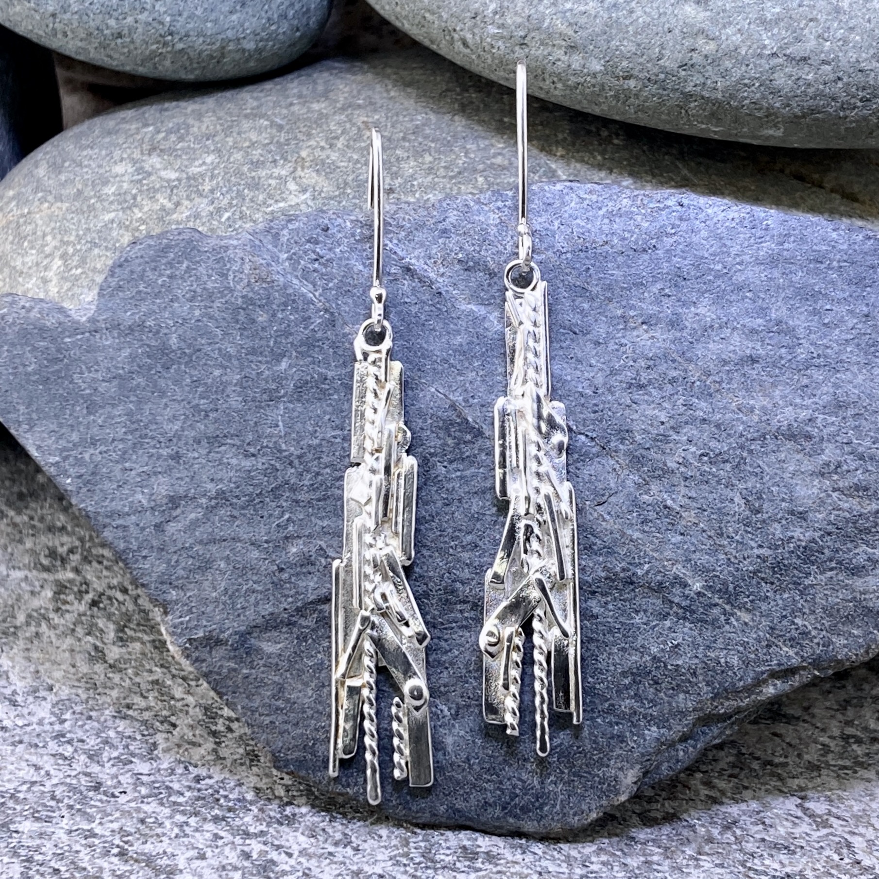 Bark Earrings – Medium Vertical – Argentium Silver 940