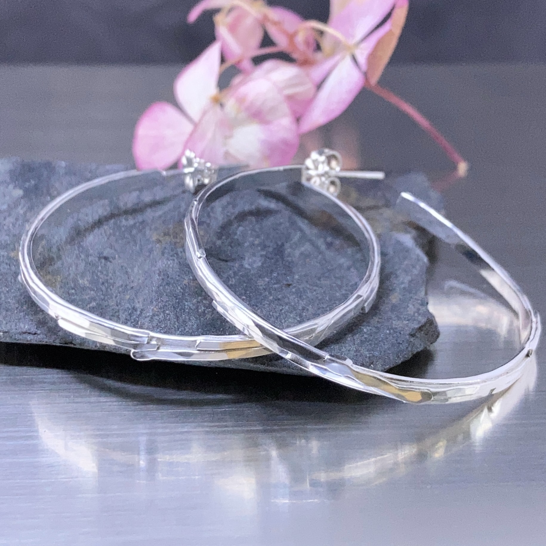 hoop earrings - bark - Argentium silver - medium - Image 3