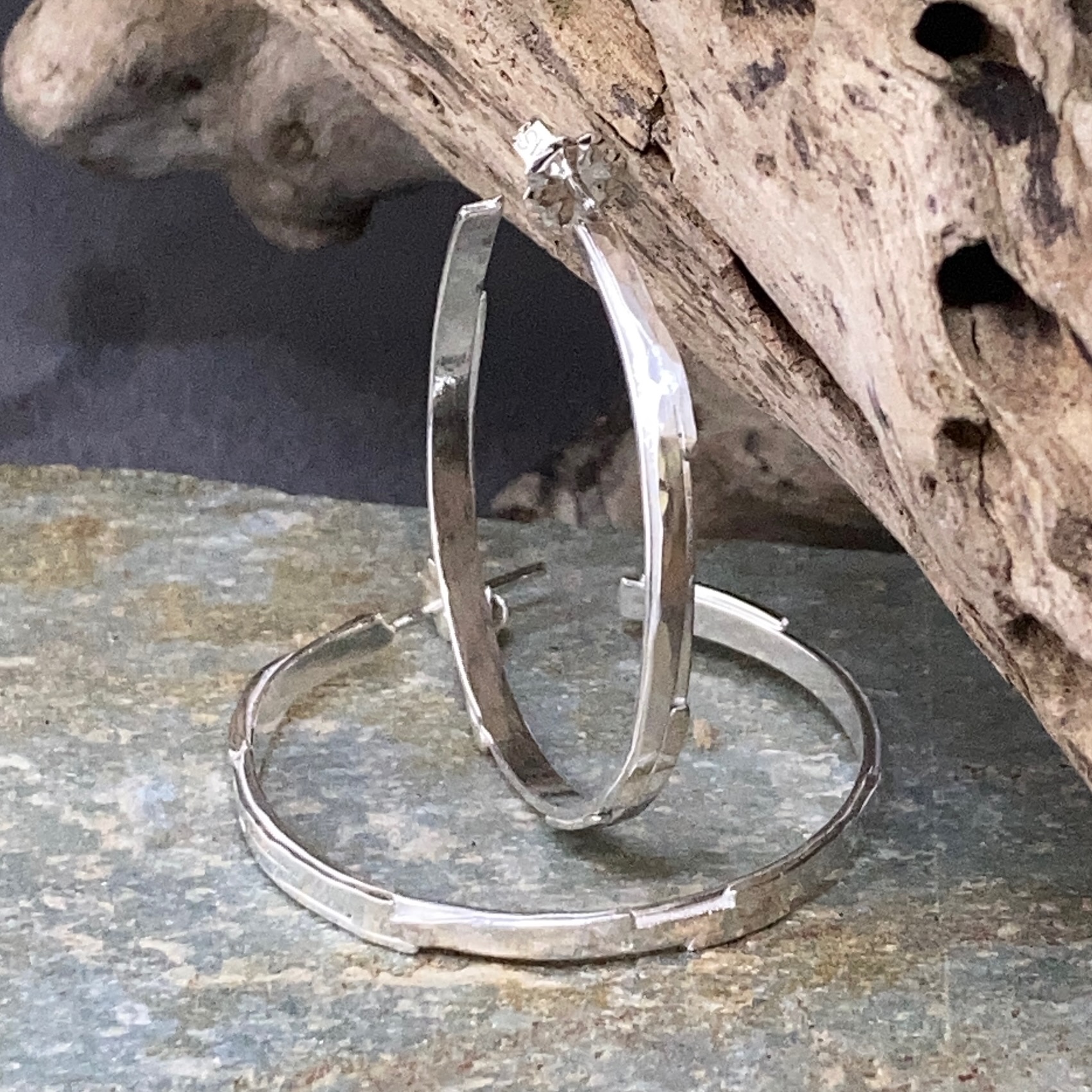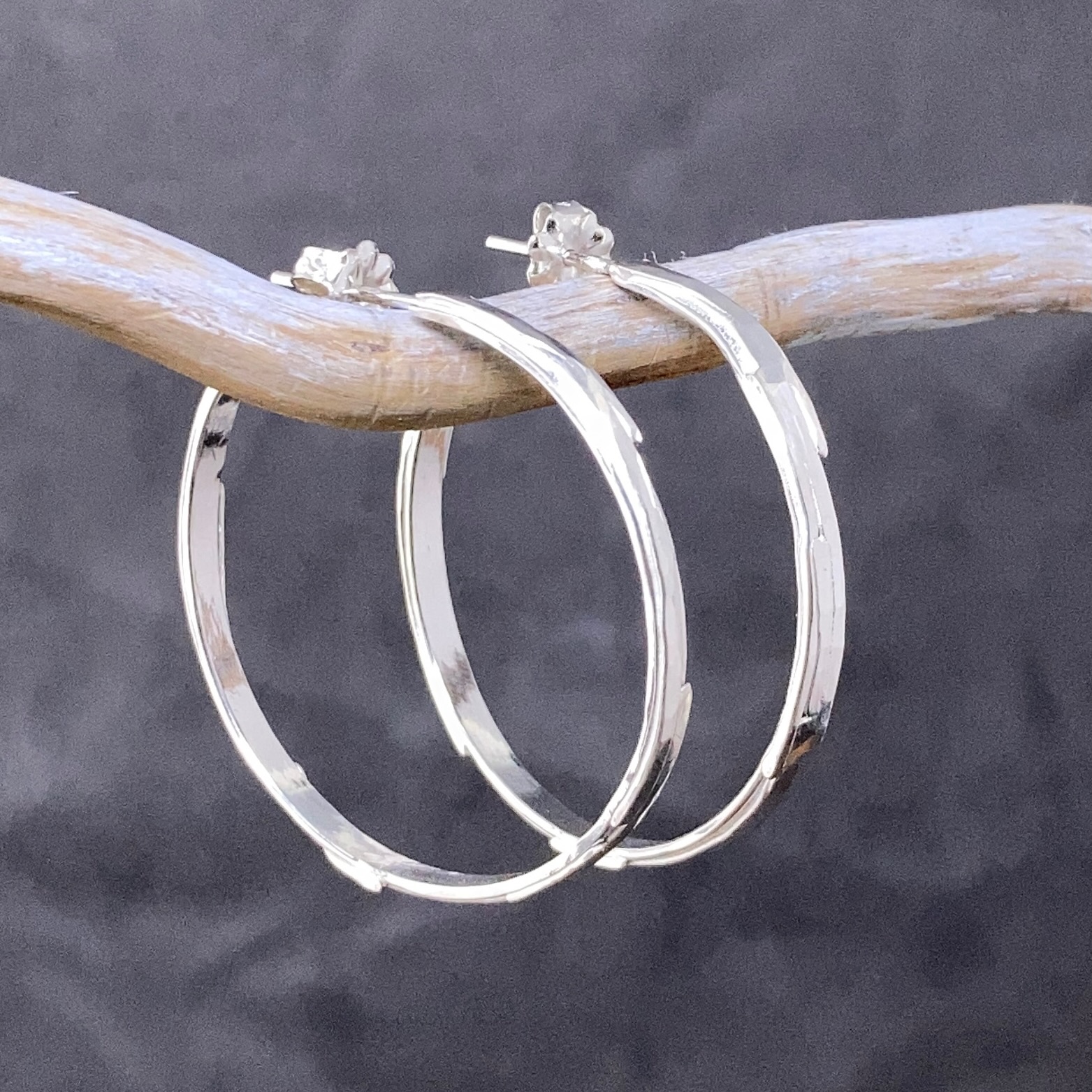 hoop earrings – bark – Argentium silver – small