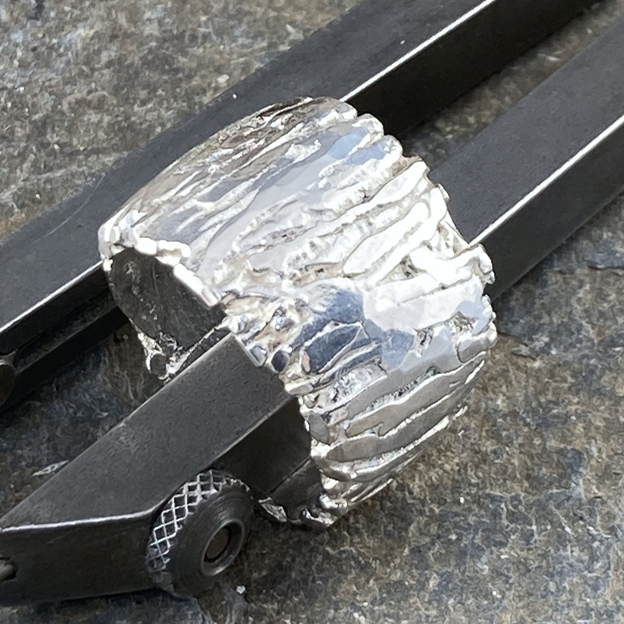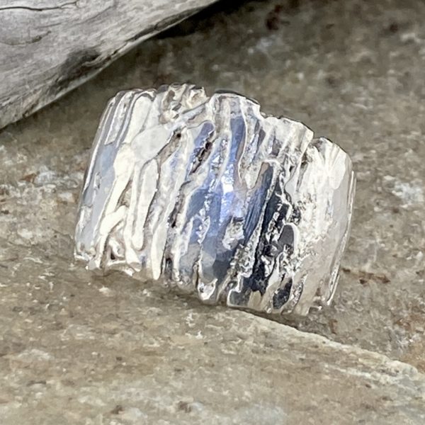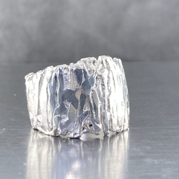 Bark design ring (vertical )- size 9.  Argentium silver – handmade in Creston BC