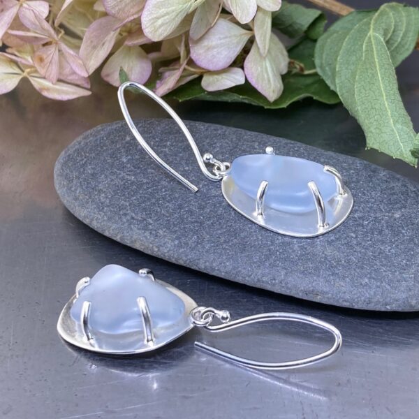 beach glass earrings - prong setting - powder blue - Argentium silver - Image 3