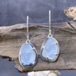 beach glass earrings – prong setting – powder blue – Argentium silver