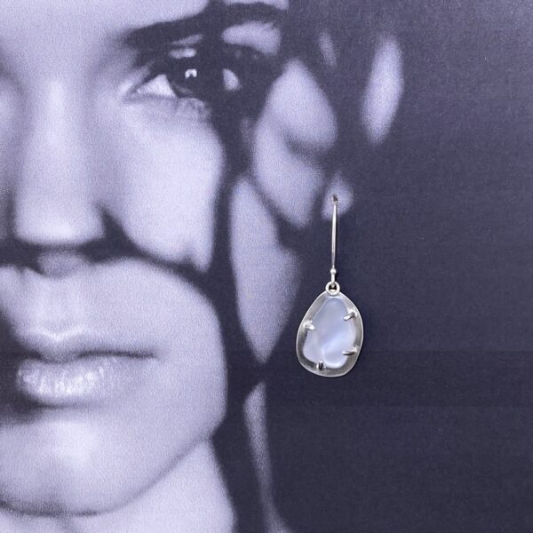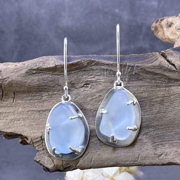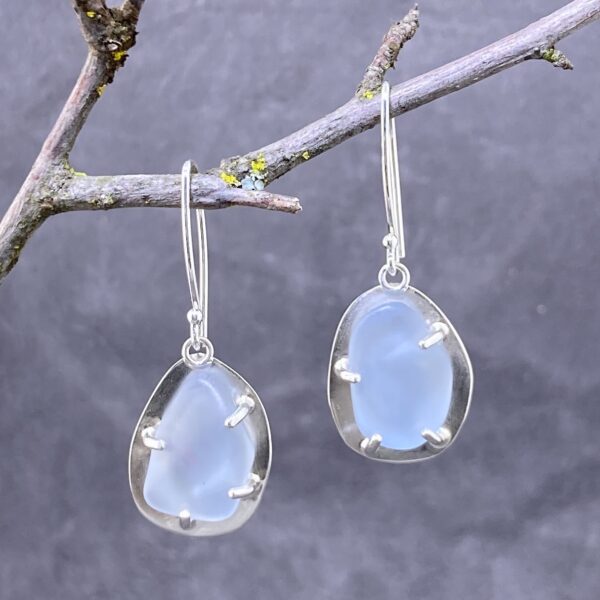 beach glass earrings - prong setting - powder blue - Argentium silver - Image 2