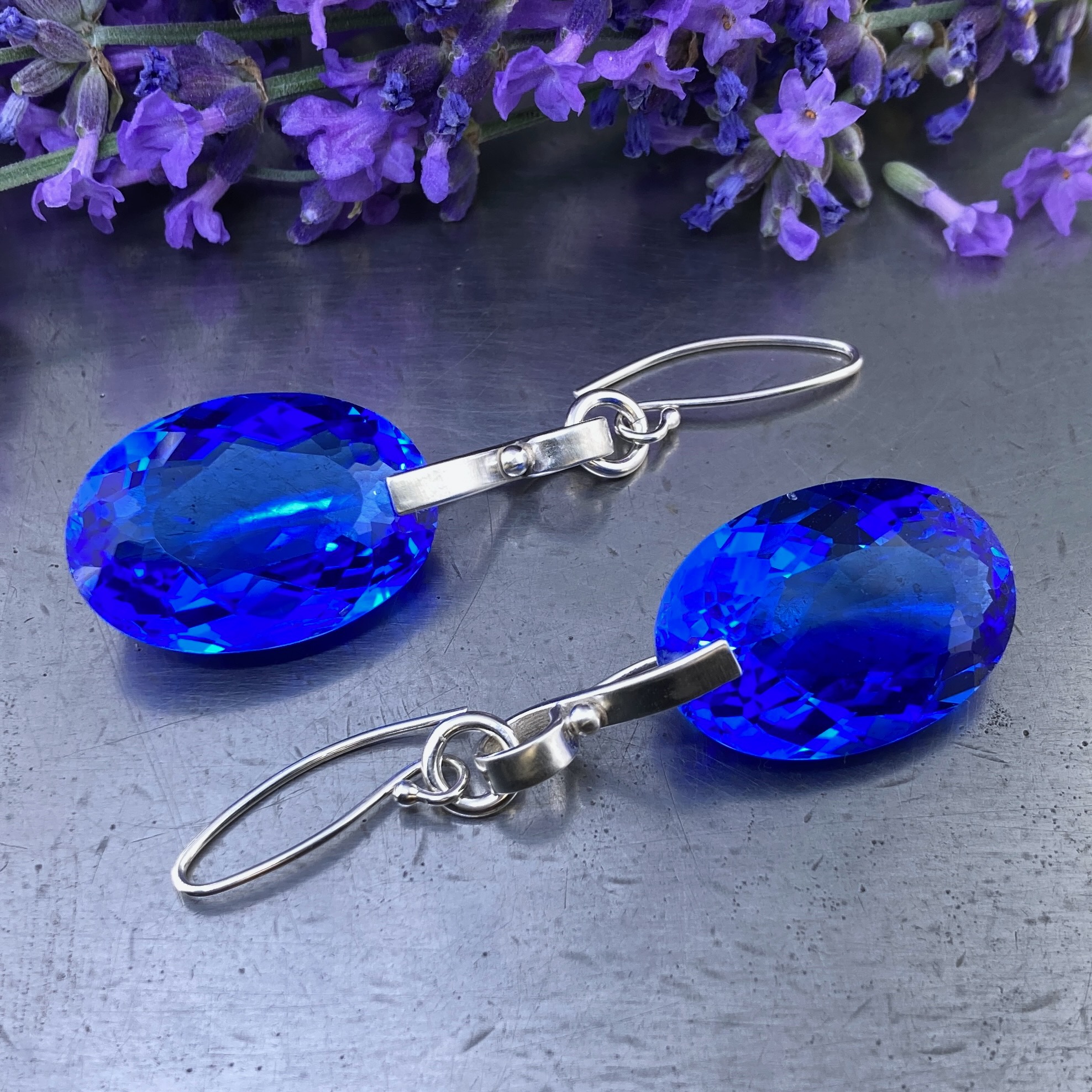 blue quartz earrings – wave curl – Argentium – 45.99 carat