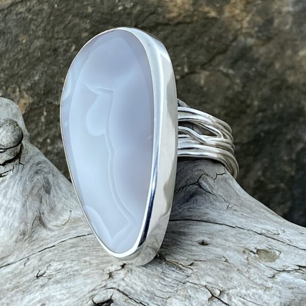 Each Twig Band ring is handmade in Argentium 940 silver. I shape the silver into curved branches and form them into a wide, airy band. The small gaps let your finger breathe, while the wide front keeps the stone steady. Even though this ring is large, it feels balanced and comfortable to wear.