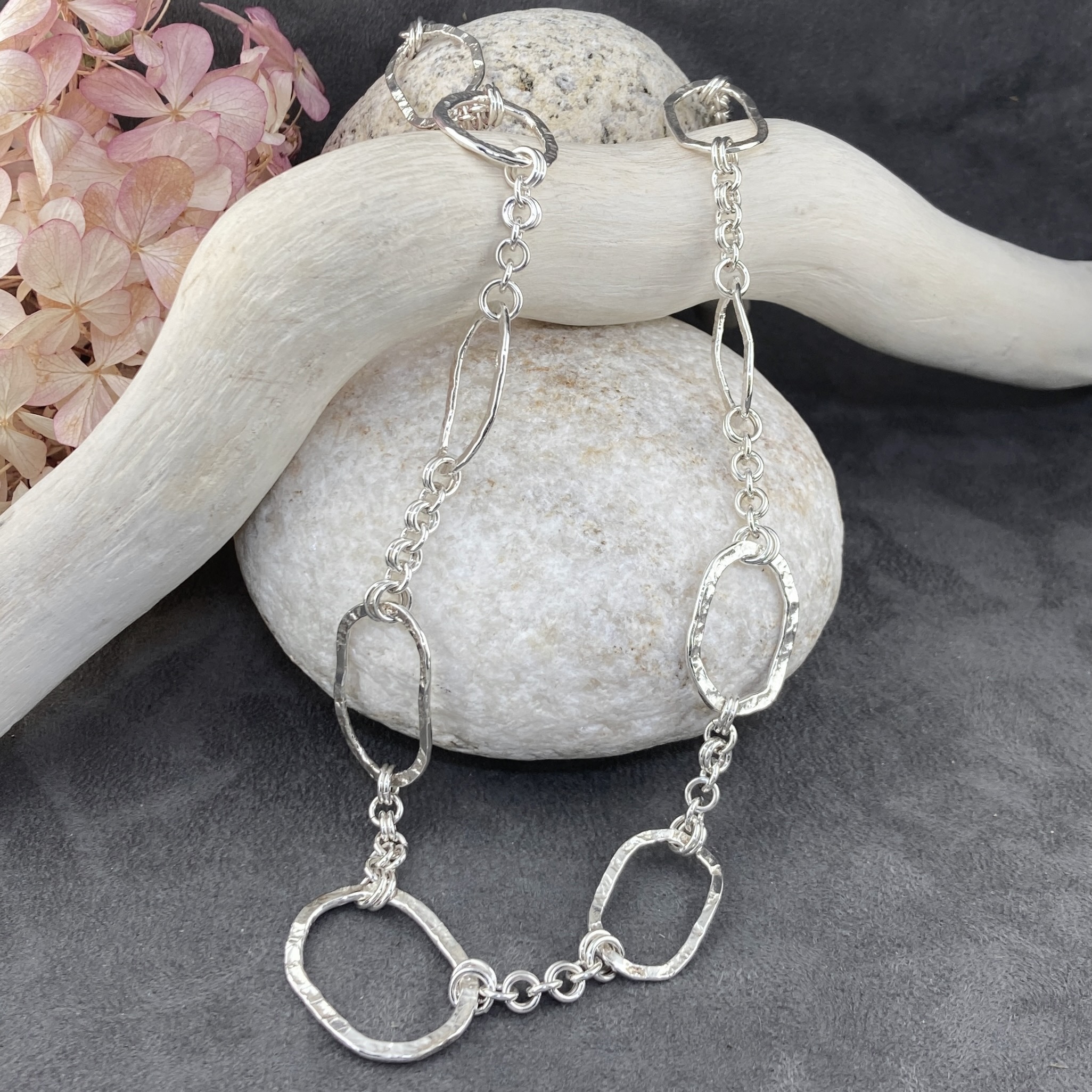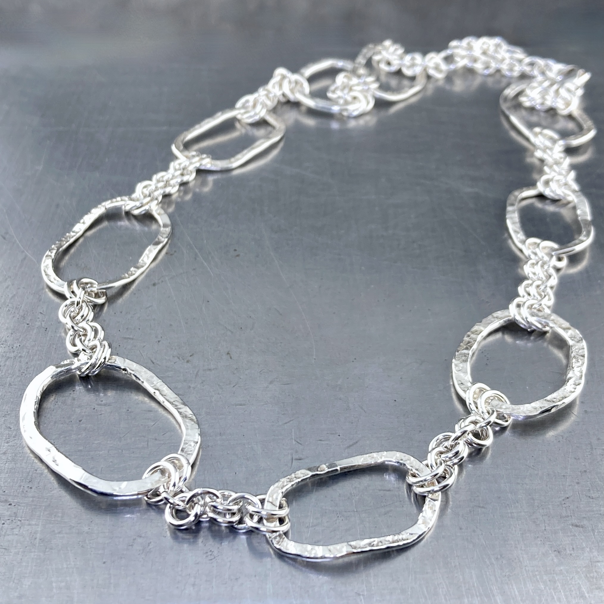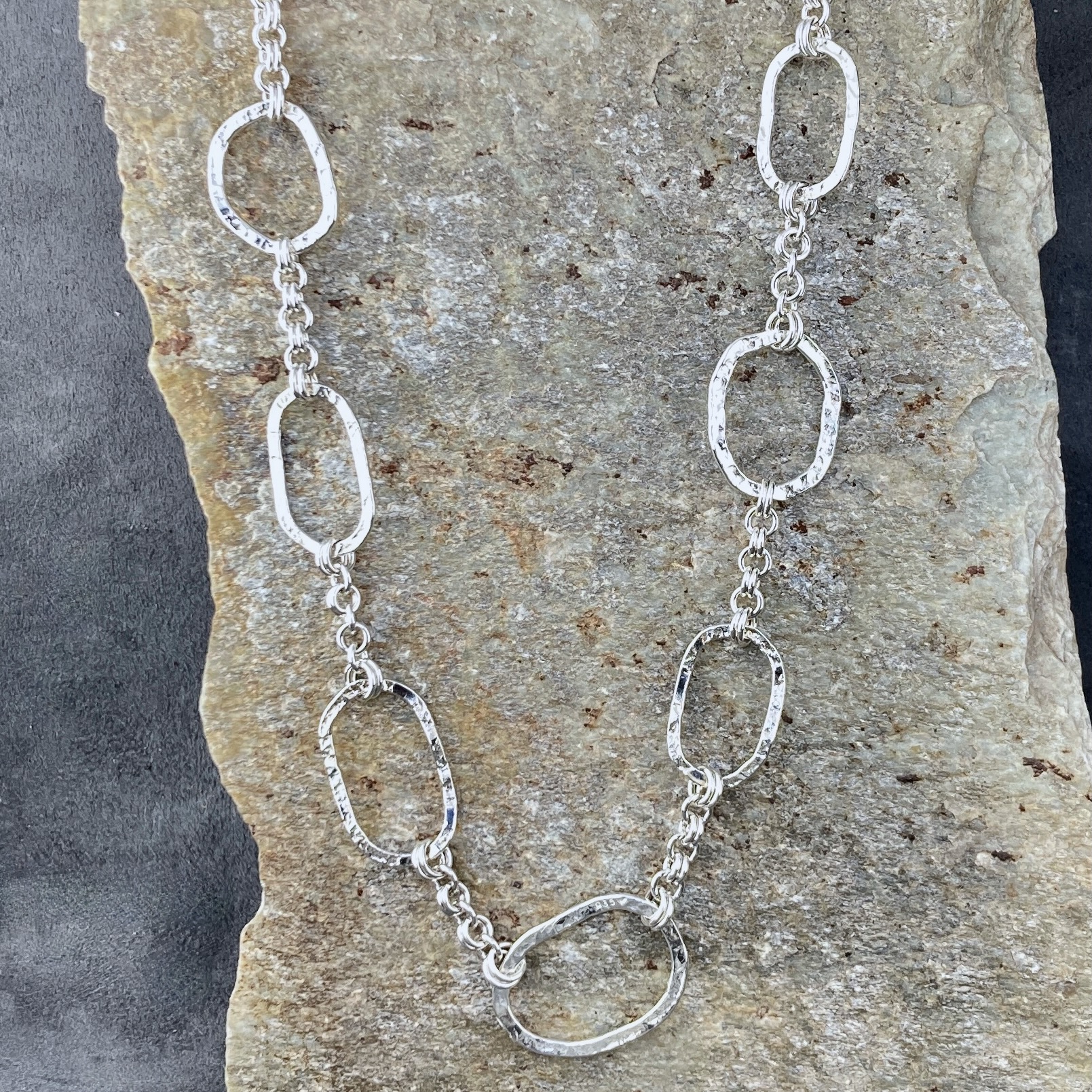 Argentium silver in a hollow boulder shape, fused and then textured.
