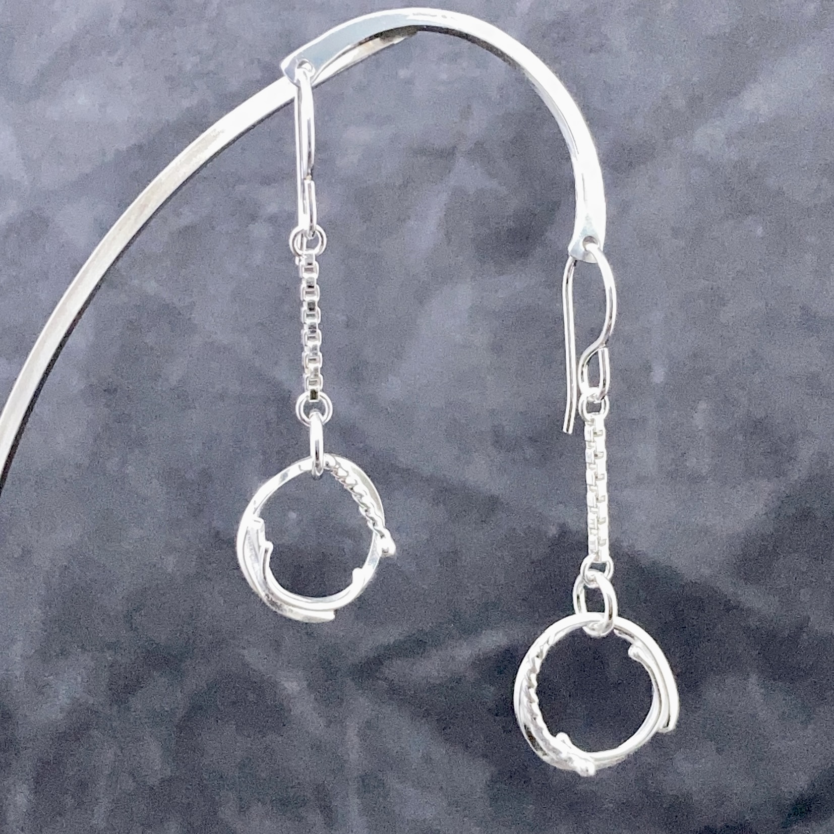A small hollow boulder earring. The silver chain adds lots of movement to the design. Â A really beautiful earring.