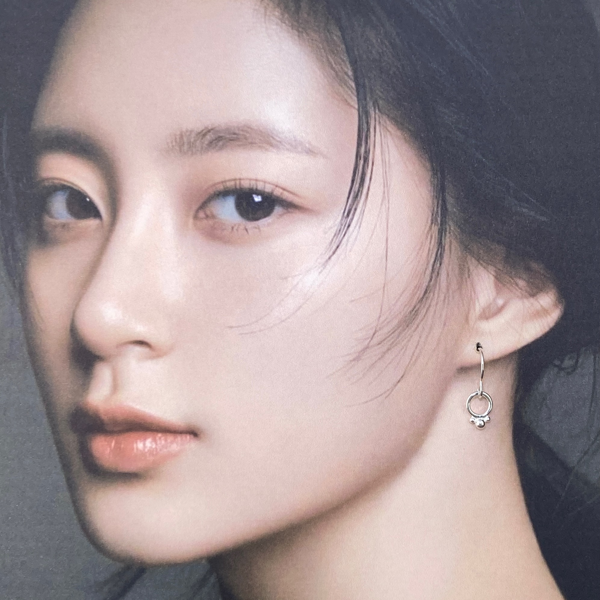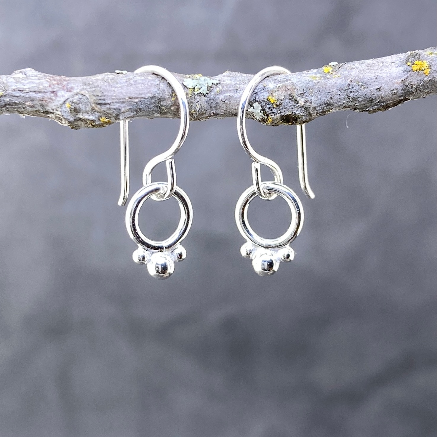 I fused a round Argentium wire, then added granules to one edge. Suspended from a hand made Argentium silver ear wire.