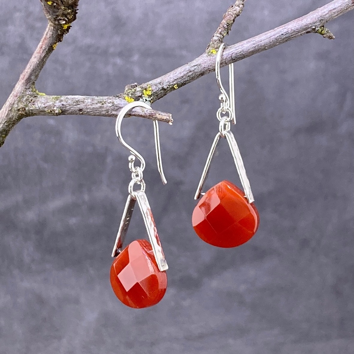 • carnelian earrings – V bail – Argentium silver