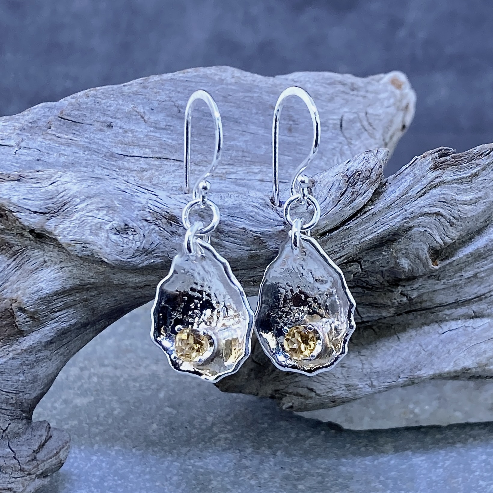 Citrine Earrings – Waves Teardrop – Argentium Silver 940