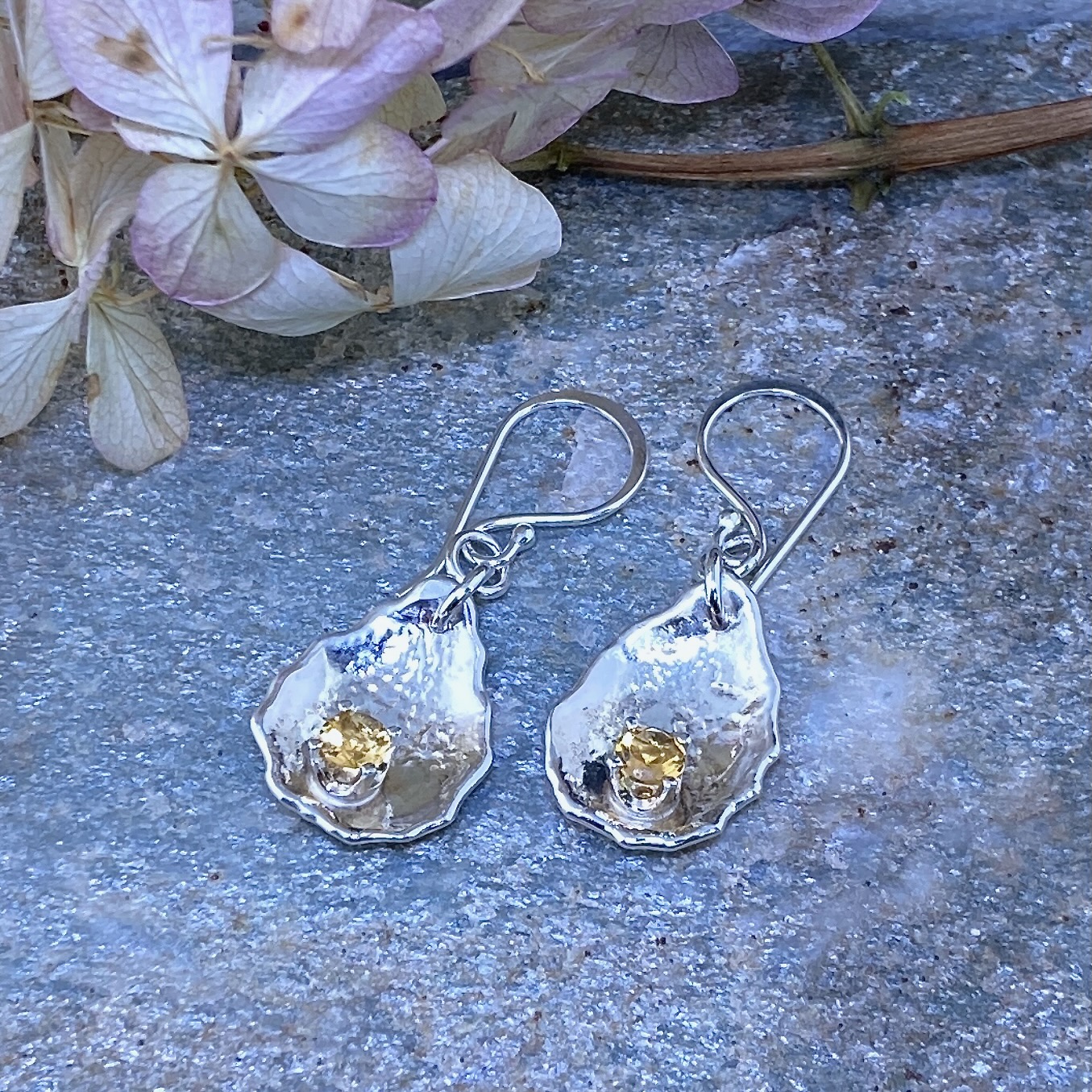 The wavy teardrop captures motion in a still form. The citrines sparkle with soft golden light, while the smooth silver reflects it in bright flashes. The balance between colour and shape gives these earrings a calm yet radiant energy.