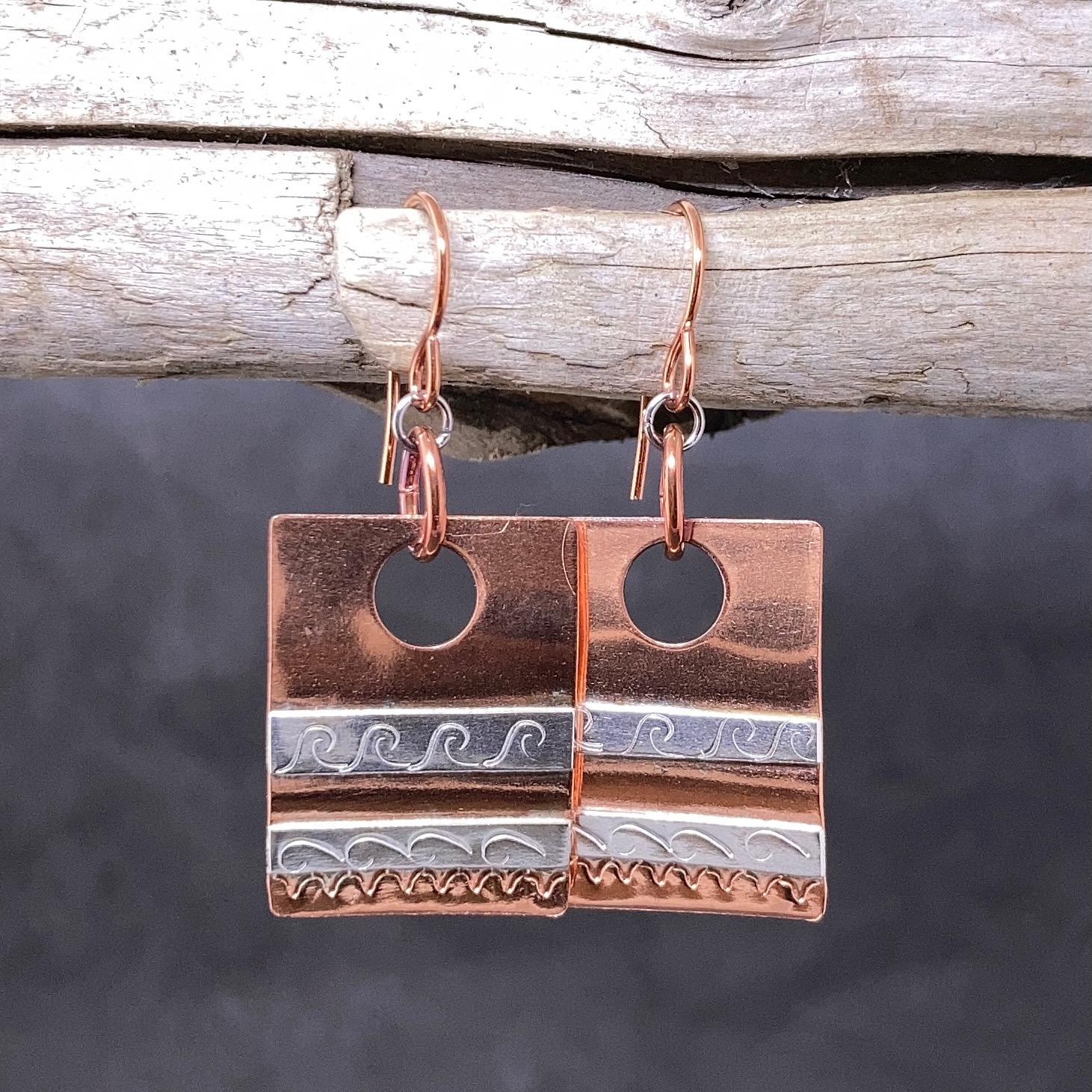copper, Argentium silver - rectangle earrings - large - Image 2