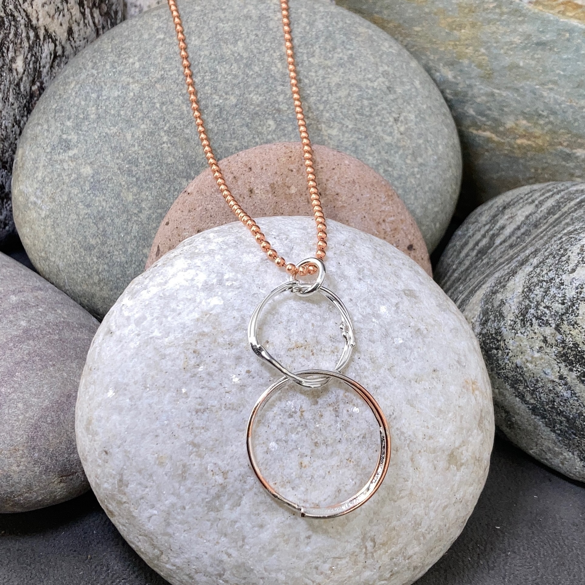 copper, Argentium silver freeform circle pendant – small - Image 2